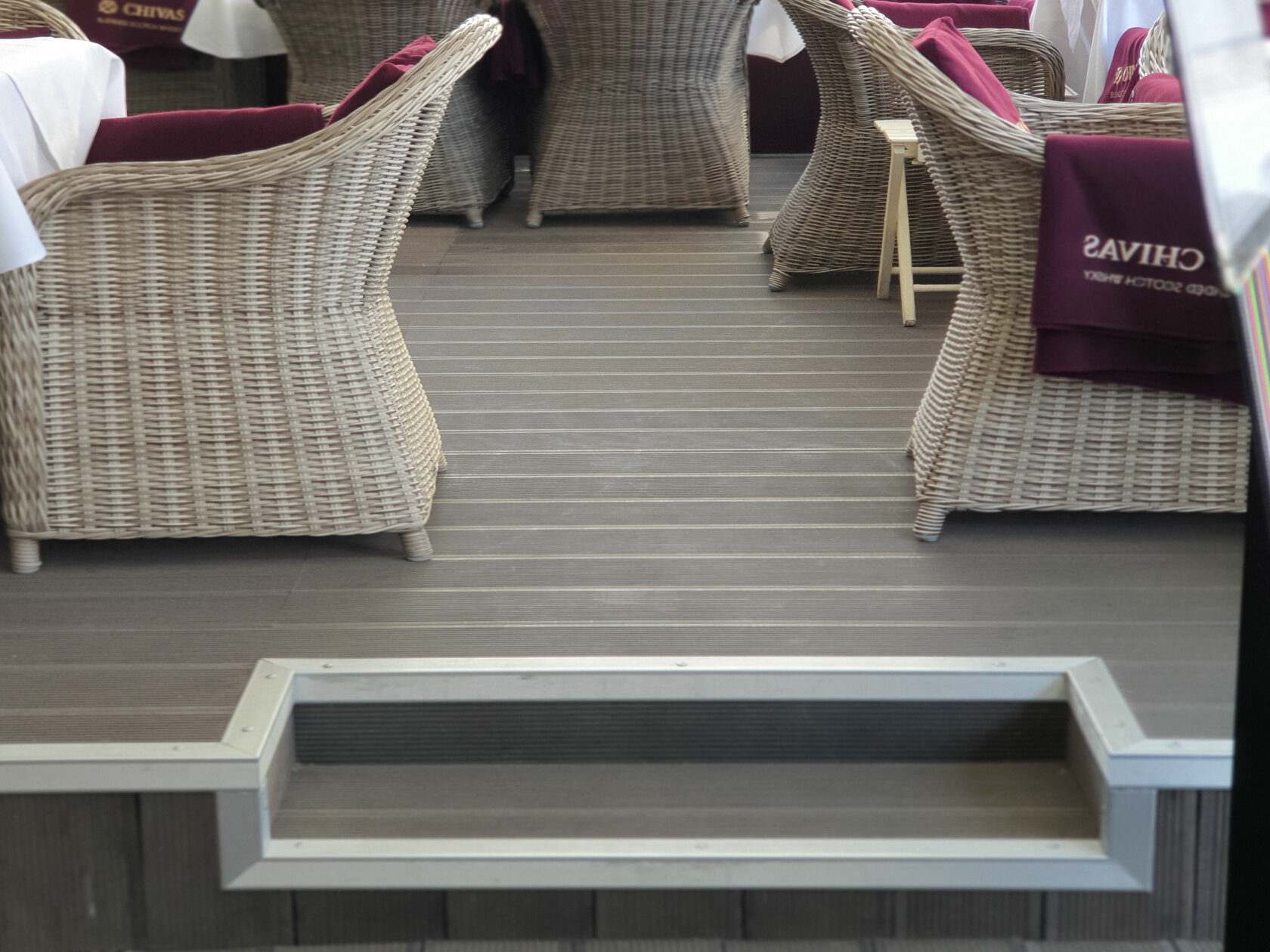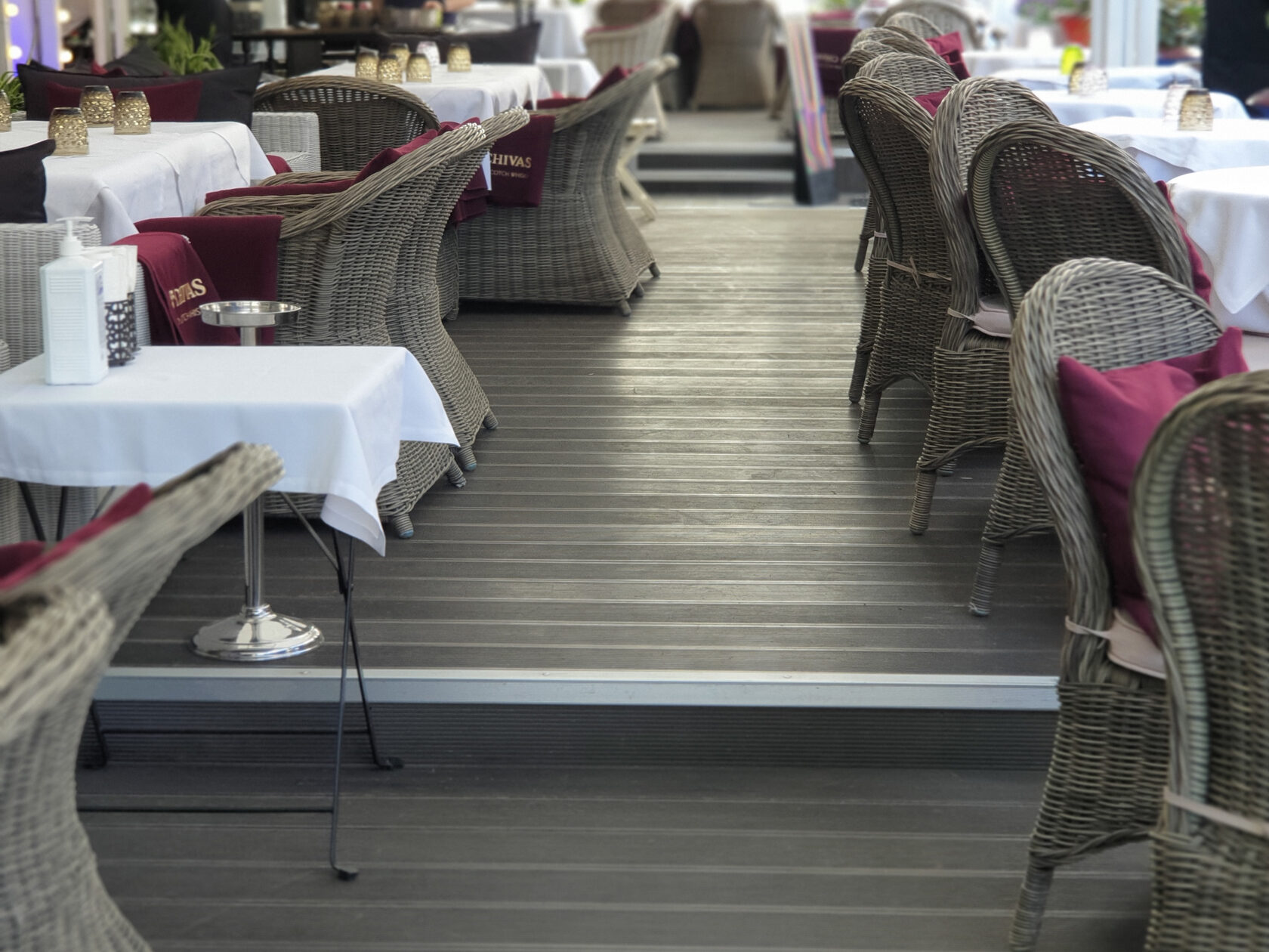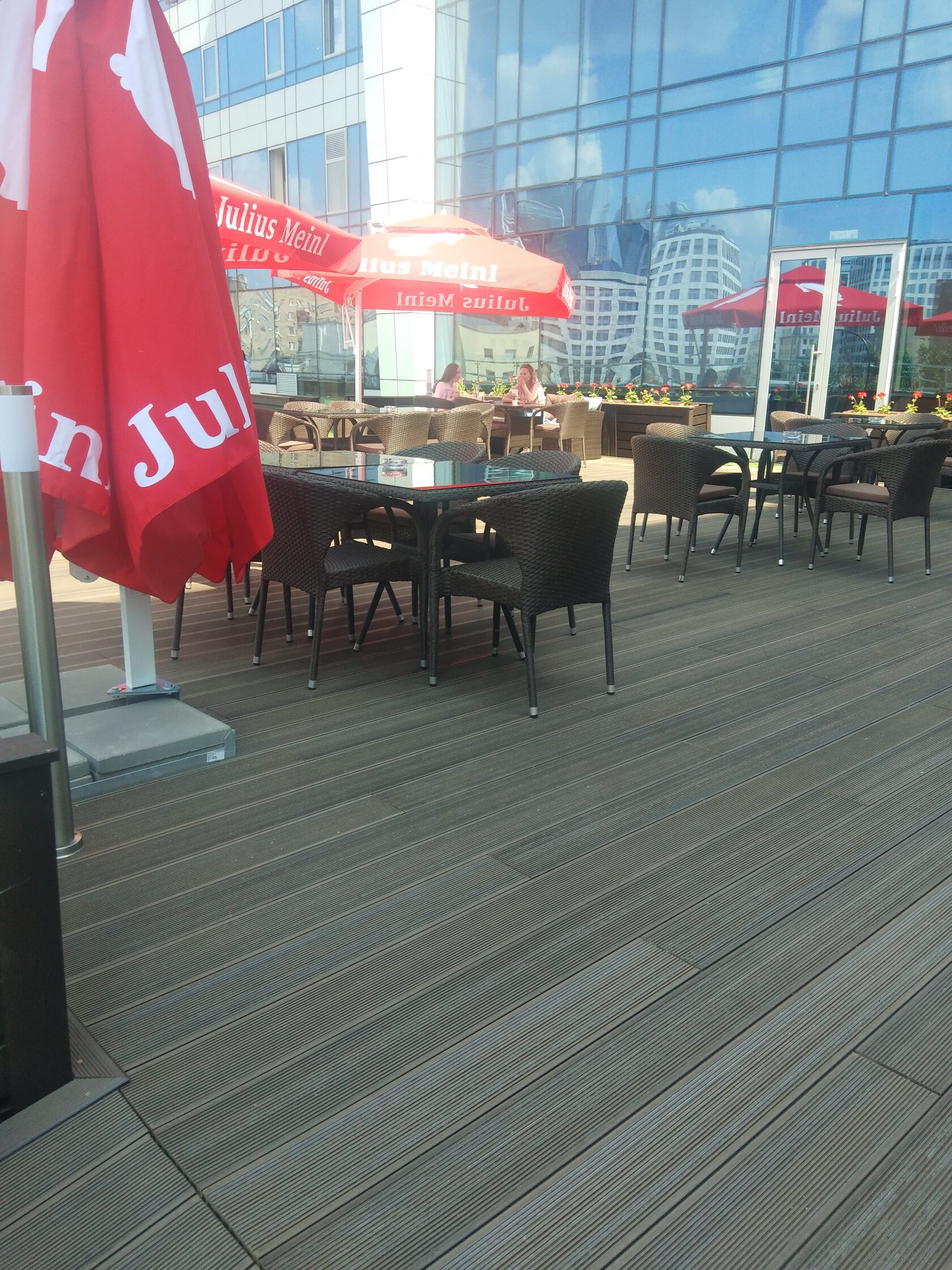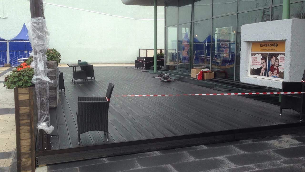 Террасная доска разработана специально для использования в местах высокой проходимости людей и оптимально подходит для строительства террас для кафе, ресторанов, причалов и пирсов